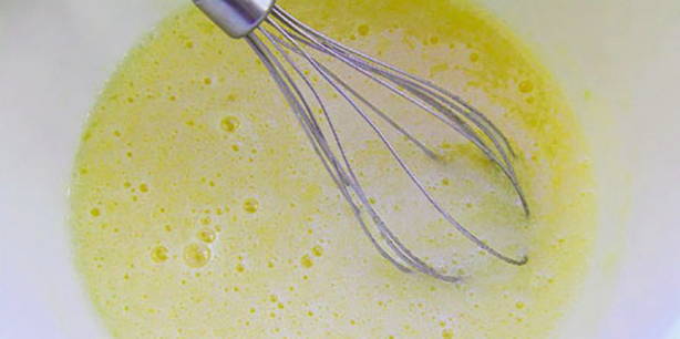 - Meng eieren, yoghurt en gesmolten boter apart.