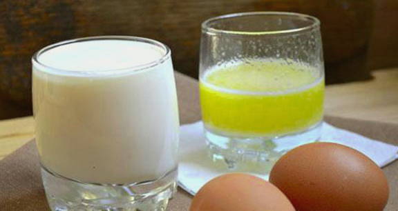 Verdeel de eieren in eiwitten en dooiers. Maal de dooiers met suiker.