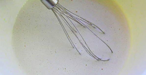 - Klop de eieren met zout en vanille tot een gladde massa.