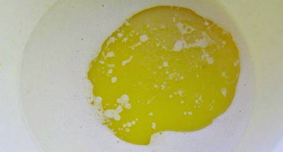 - Voeg vervolgens de gesmolten boter toe aan de kom.