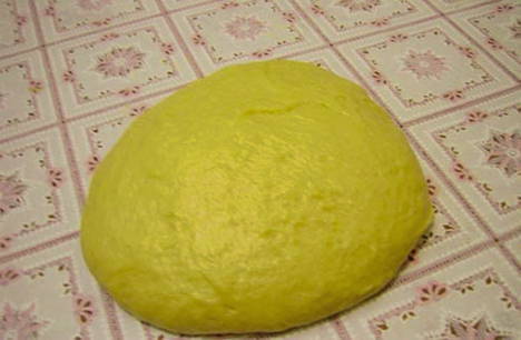 Voeg de dooiermassa toe aan het bijpassende deeg, meng.