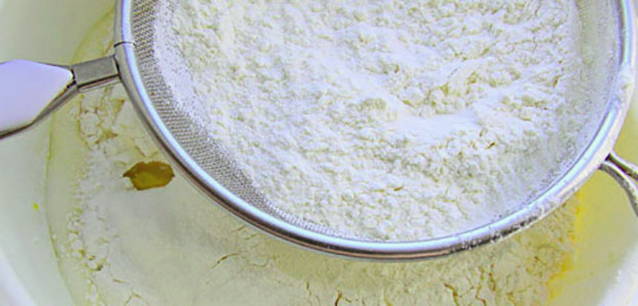 - Zeef de bloem door een zeef. Voeg bloem in porties toe aan een kom en kneed het deeg.