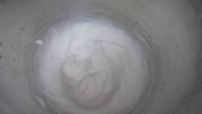 Verdeel de eieren in eiwitten en dooiers. Maal de dooiers met suiker.