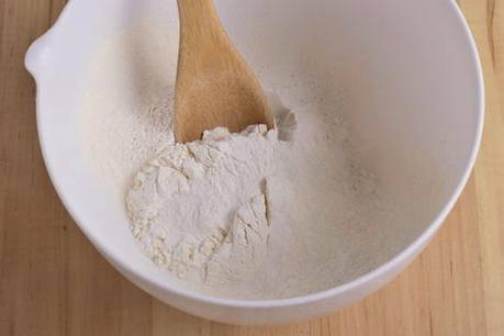 - Zeef de bloem in een kom samen met het zout en het bakpoeder.