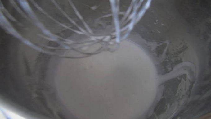 - Klop het resterende eiwit met poedersuiker tot stabiele pieken.