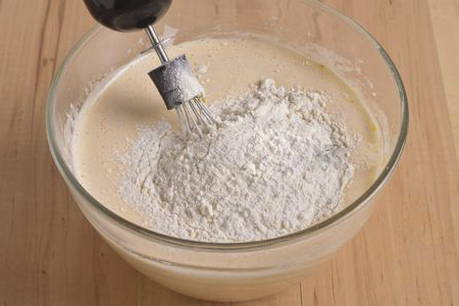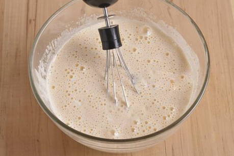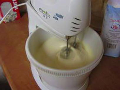 - Klop eieren met suiker tot een homogene lichte massa is verkregen.