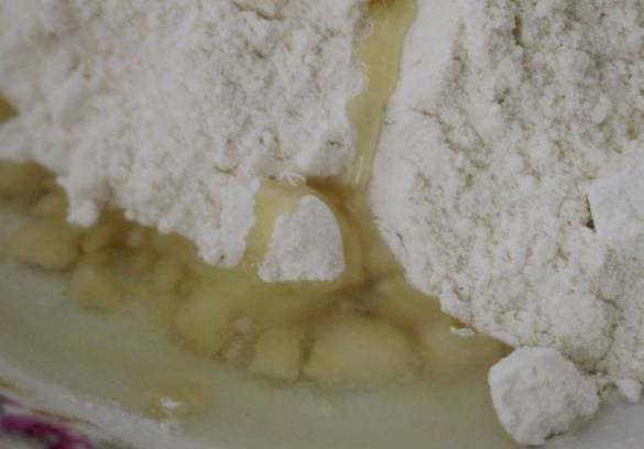- Verwarm de melk, voeg er gist aan toe, elk een paar eetlepels suiker en gezeefde bloem. Roer de ingrediënten door elkaar en laat een half uur op een warme plaats staan.