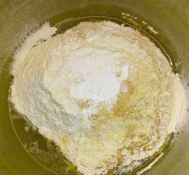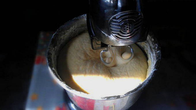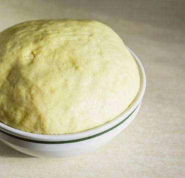 - Doe de losse ingrediënten in een kom en kneed het deeg.