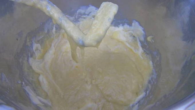 - Klop suiker met eieren en vanille. Voeg zachte boter toe aan de eiermassa.