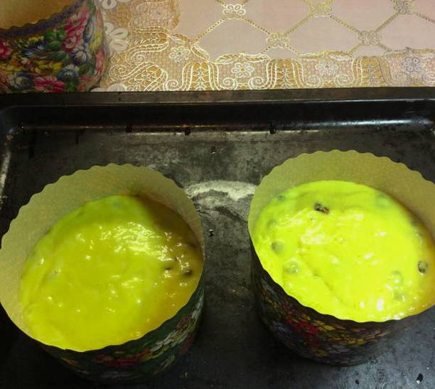 - Verdeel het deeg in vormen en laat een half uur staan, gedurende deze tijd zal het deeg wat meer groeien. Bedek de vormen vooraf met perkament en vet in met plantaardige olie.