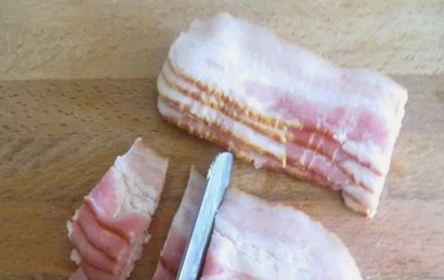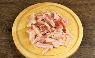 Snijd het spek in even grote reepjes.
