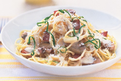 Carbonara pasta met champignons