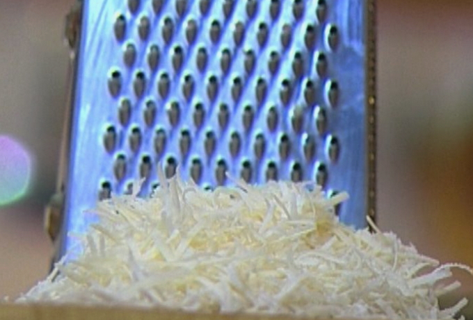 - Rasp Parmezaanse kaas of een andere harde kaas fijn en voeg in porties toe aan de saus, telkens goed roeren.