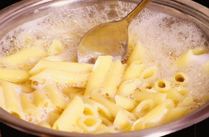- Kook de pasta, zoals op de verpakking staat, maar probeer hem iets niet gaar te worden, aangezien de pasta nog steeds in de saus gaar is en dan de gewenste toestand bereikt.