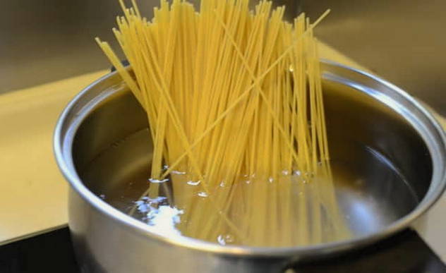 - Doe de spaghetti in kokend water en kook volgens de instructies op de verpakking. Het is belangrijk om de pasta al dente te bereiden, dat wil zeggen dat hij een beetje hard moet blijven.