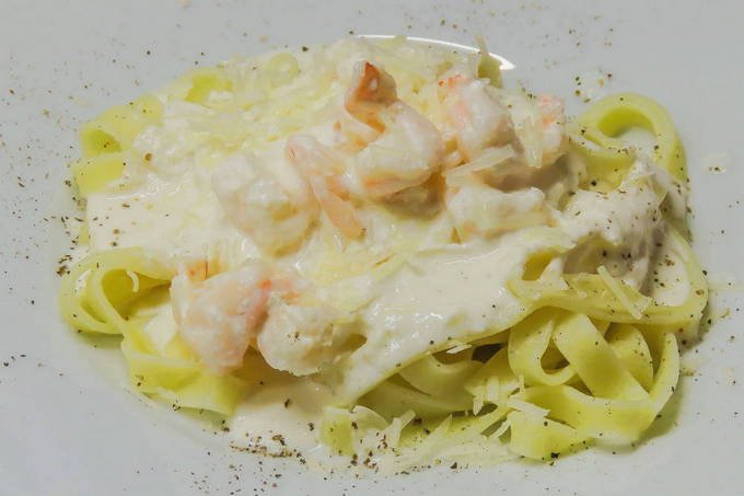 - Pasta met garnalen en inktvis in een romige knoflooksaus