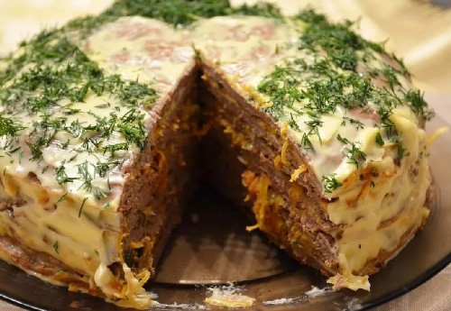 Varkensleverlevercake met uien en wortelen is een ongelooflijke delicatesse. Varkenslever is veel gezonder dan vleesgerechten en smaakt veel interessanter. Het belangrijkste is om rekening te houden met alle subtiliteiten bij het koken! Absoluut iedereen zal dit voorgerecht lekker vinden en zal snel van de borden verdwijnen!
