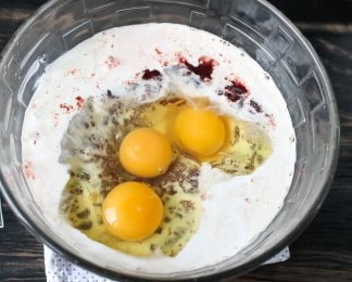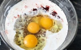 - Voeg zure room toe aan een kom met gehakte lever, voeg dan de eieren toe, voeg griesmeel toe en voeg naar smaak zout en peper toe (0,5 theelepel is voldoende). We mengen alle ingrediënten.