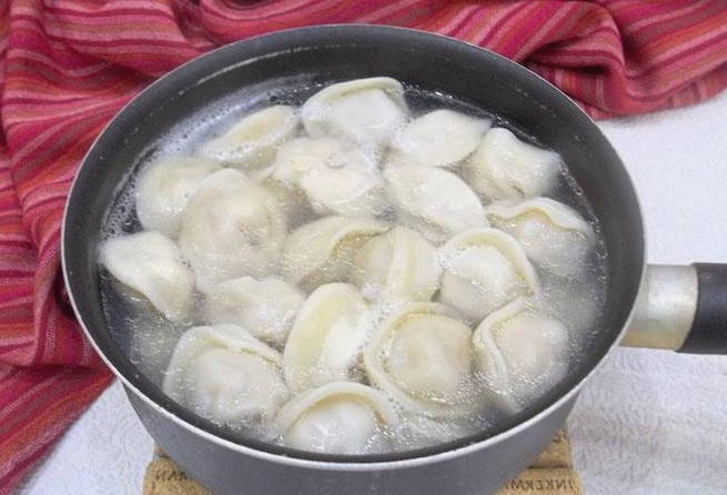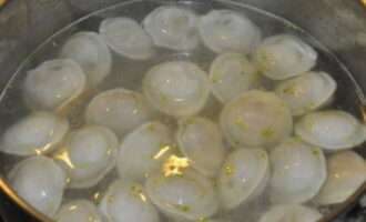- Wanneer het water in de pan kookt, zout het en giet de dumplings erin, kook ze tot ze half gaar zijn.