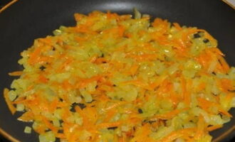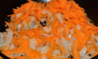 Schil en hak de uien en wortelen en fruit ze op middelhoog vuur gedurende ongeveer 6 minuten.
