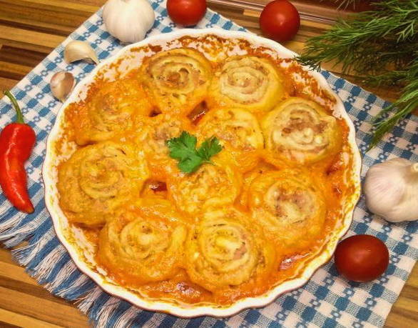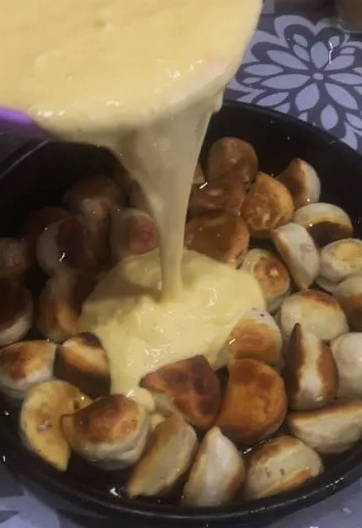 - Bestrooi de dumplings met kaas en stuur ze een half uur naar de voorverwarmde oven.