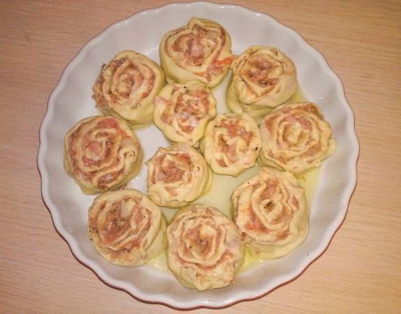 - We bakken de dumplings 12 minuten in een voorverwarmde oven, decoreren met kruiden en serveren. Eet smakelijk!