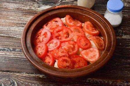 - Was de tomaten, snijd ze in stukjes en leg ze op de dumplings.