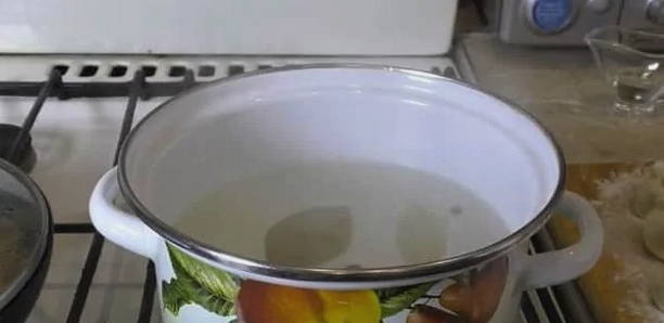 - We zetten het water op het vuur, voegen er laurier en peper aan toe.