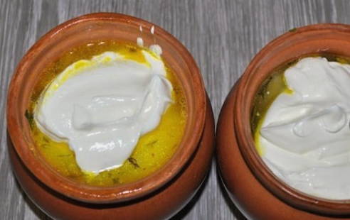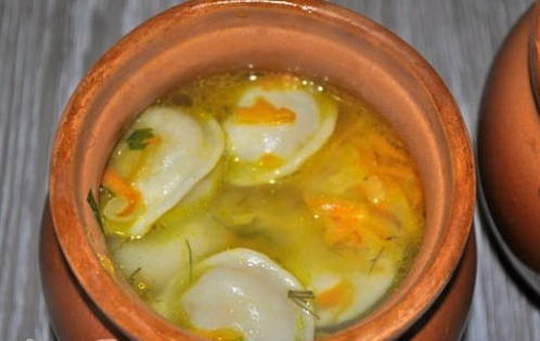- Giet de bouillon die overblijft na het koken van de dumplings in de potten.