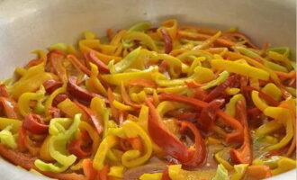 Voeg gehakte paprika's toe aan het borrelende mengsel en kook ongeveer 4-5 minuten.
