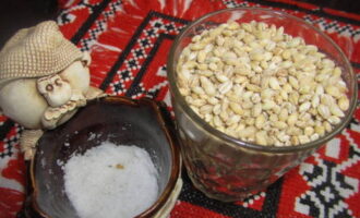 - Vul de Alkmaarse gort met eerder gekookt en afgekoeld water. We staan erop voor ongeveer 30 minuten en spoelen grondig.