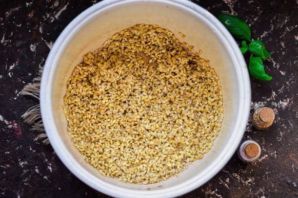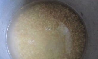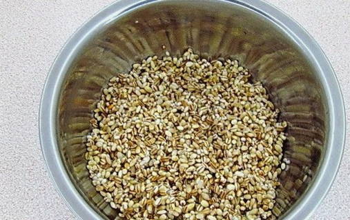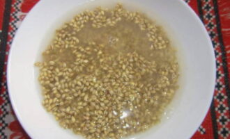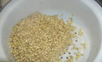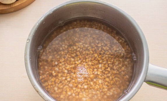 - Vul het graan met warm water en spoel het af. Drijvende granen moeten worden weggegooid.