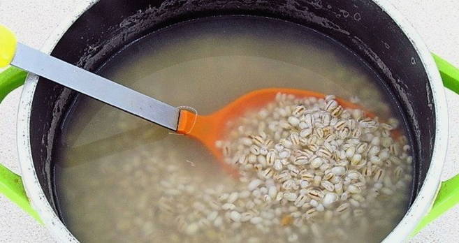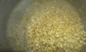 - Vul de voorbereide granen met warm water. Zet op het vuur en kook op middelhoog vuur gedurende ongeveer 30 minuten.