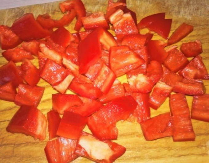 - Daarna snijden we de paprika.