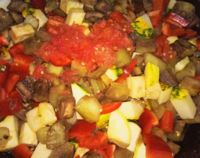 - Zout en peper de bereide groenten. We smeerden ze parelgort.