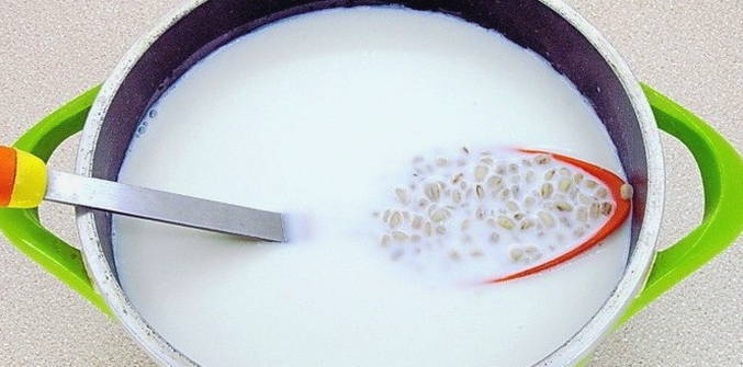 - We doen het graan terug in de pan en vullen het met melk.