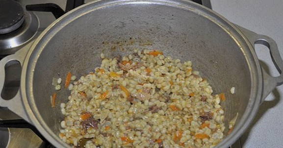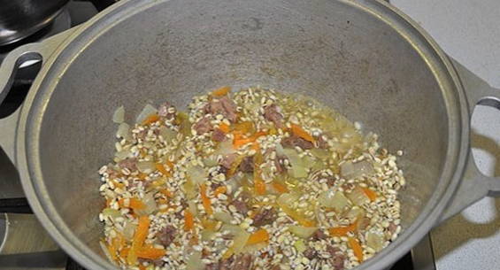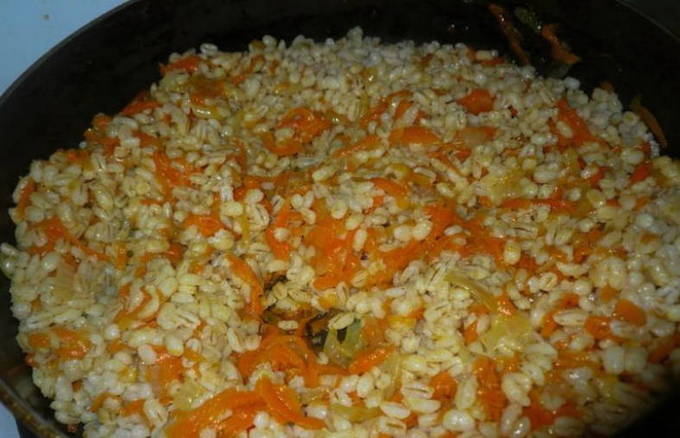 - Hoe gerstepap met uien en wortels in een pan koken?