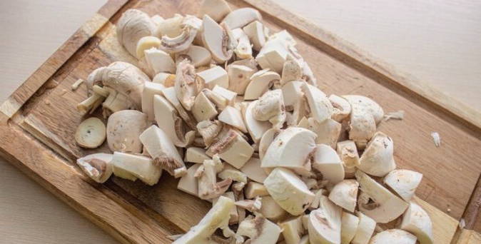 - Snijd met een mes en voorgewassen champignons.