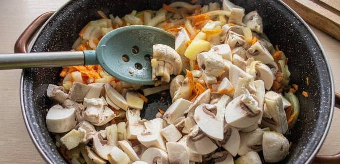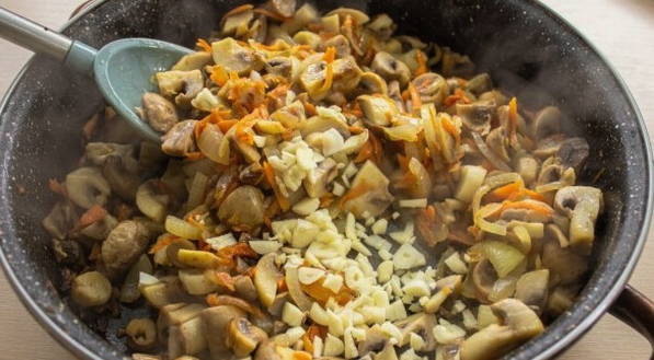 - We voegen champignons toe aan de totale massa.