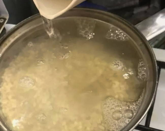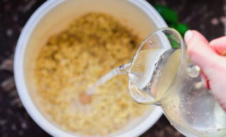Vul de Alkmaarse gort met warm water.