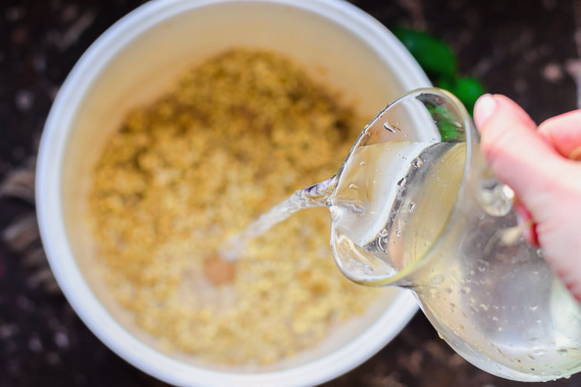 - Giet water in een kom, voeg kruiden en zout toe.