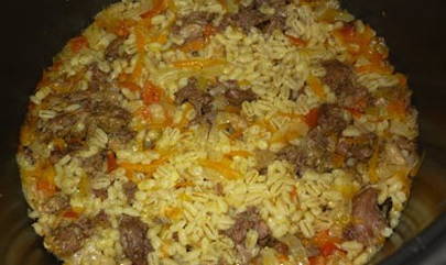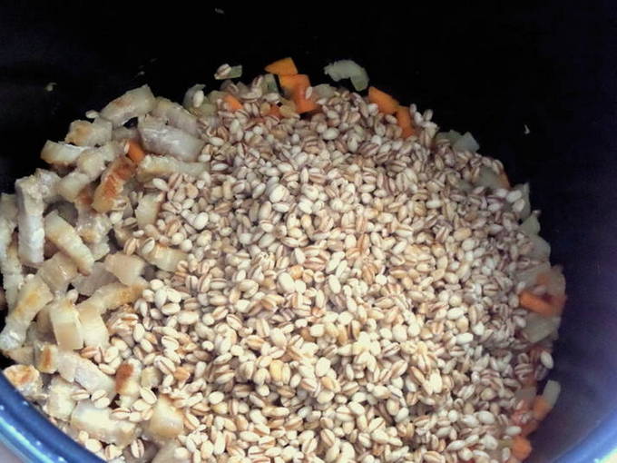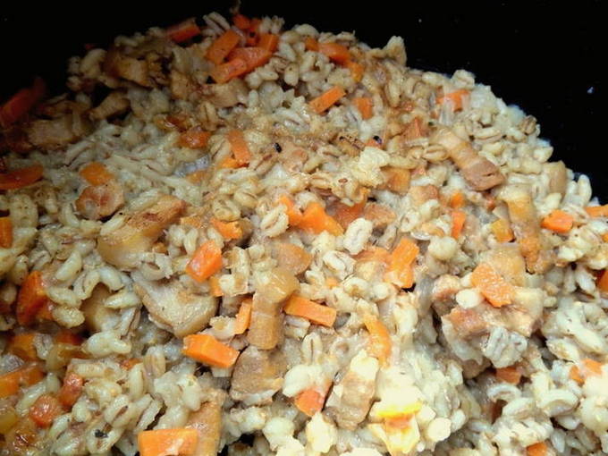 - Gerst pap met vlees in een slowcooker