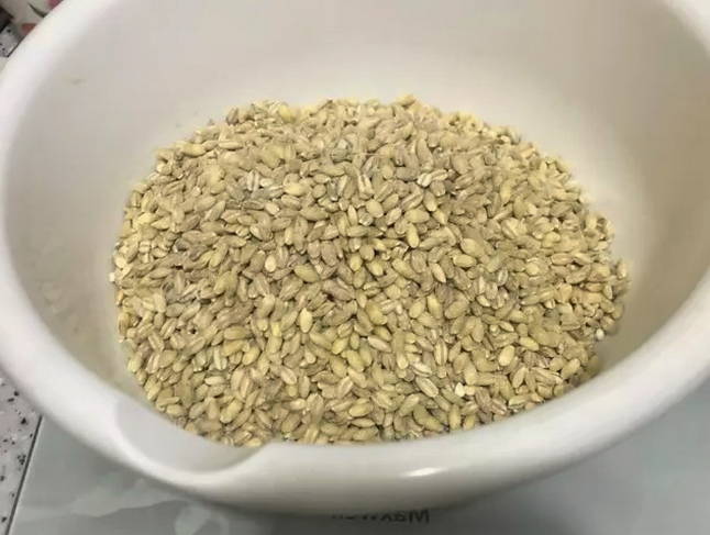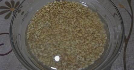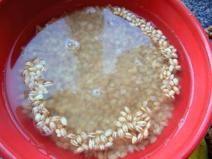 - Vul de gerst gedurende 15 minuten met kokend water.