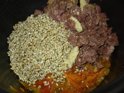 Gerst pap met vlees in een slowcooker