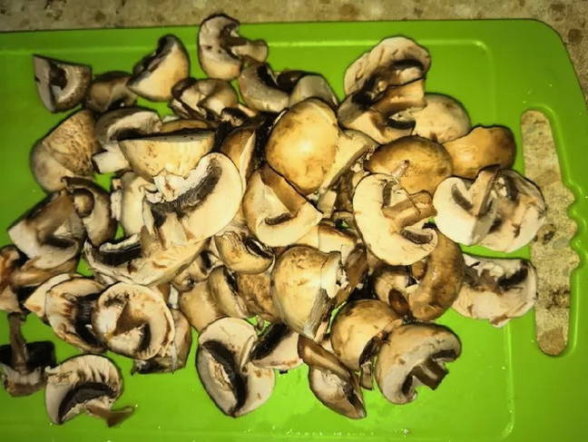 - We wassen de champignons en snijden ze in tweeën.