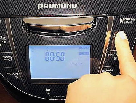 - We sluiten de multicooker en stellen de "Pap" -modus in op 50 minuten.