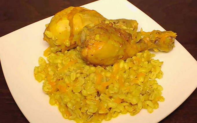 Een eenvoudig en gezond recept voor gerst met kippenboutjes. Door het koken in een multicooker is de pap kruimelig, het vlees sappig en mals en de toevoeging van uien, wortelen en kruiden geeft het gerecht een rijke smaak.