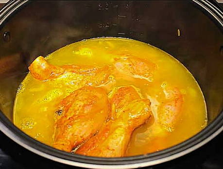 - Leg de kip vervolgens op de grits, sluit de multicooker met een deksel.