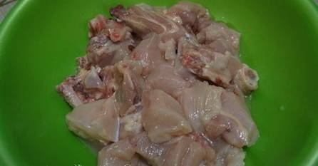 - Snijd de kip in kleine stukjes.