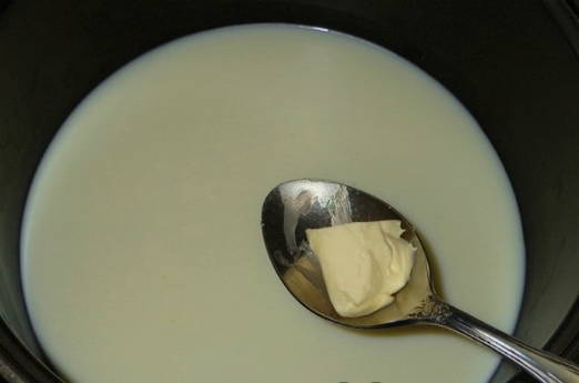 - Vul de Alkmaarse gort met melk en vet de ongecoate zijkanten van de kom in met boter.